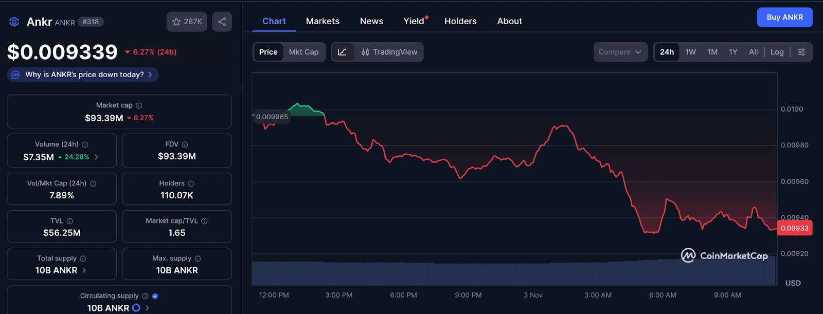 The ANKR coin price has remained range-bound between $0.0092–$0.0096, reflecting weak demand and a lack of meaningful catalysts.