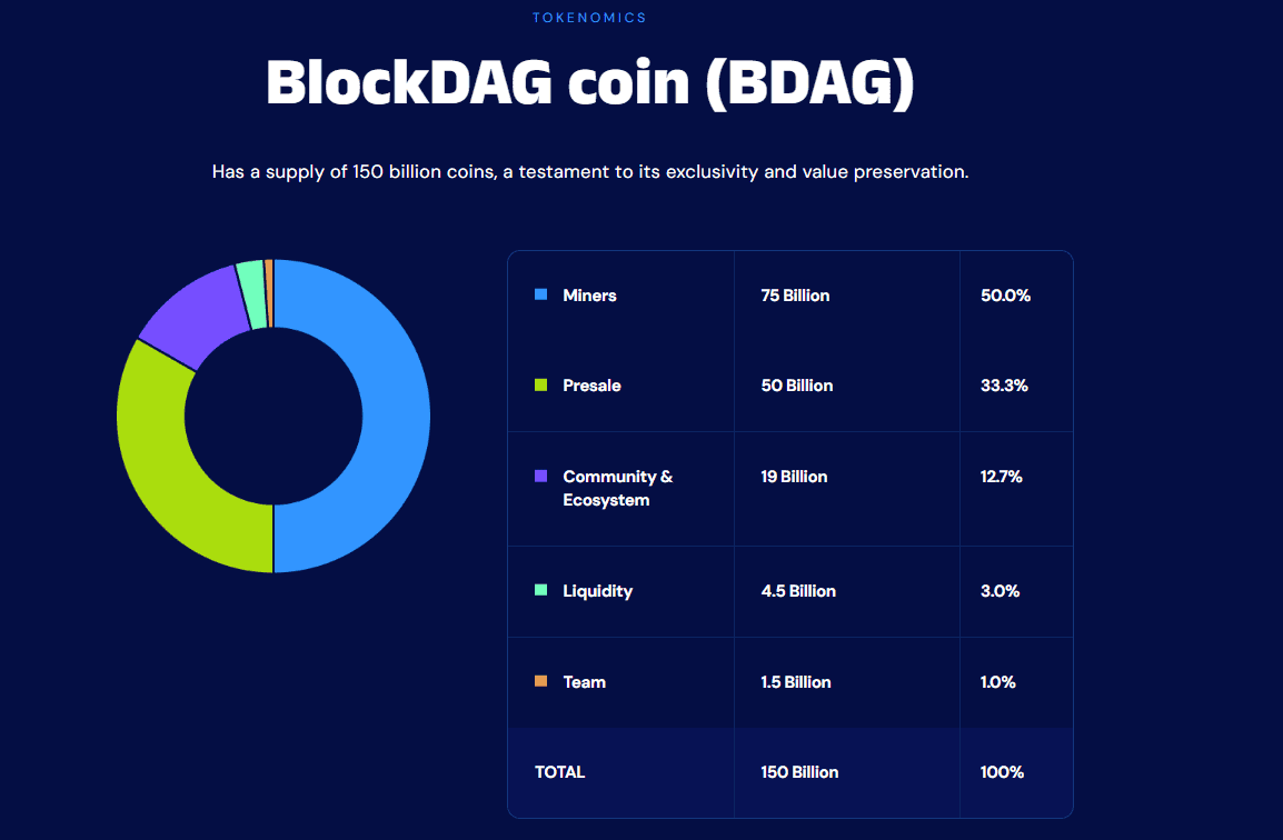 - Tokens Sold: ~33% of total supply (150B BDAG, ~49.5B tokens for presale)