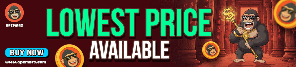 ApeCoin is like an ape family, at $1.50–$2.00, with NFT games and Bored Ape friends on Ethereum. Partnerships predict $5+ in 2026 from fun uses. As the best meme coins to invest, ApeCoin’s group is strong, team with APEMARS top crypto presale for ape fun plus moonshot jumps.
