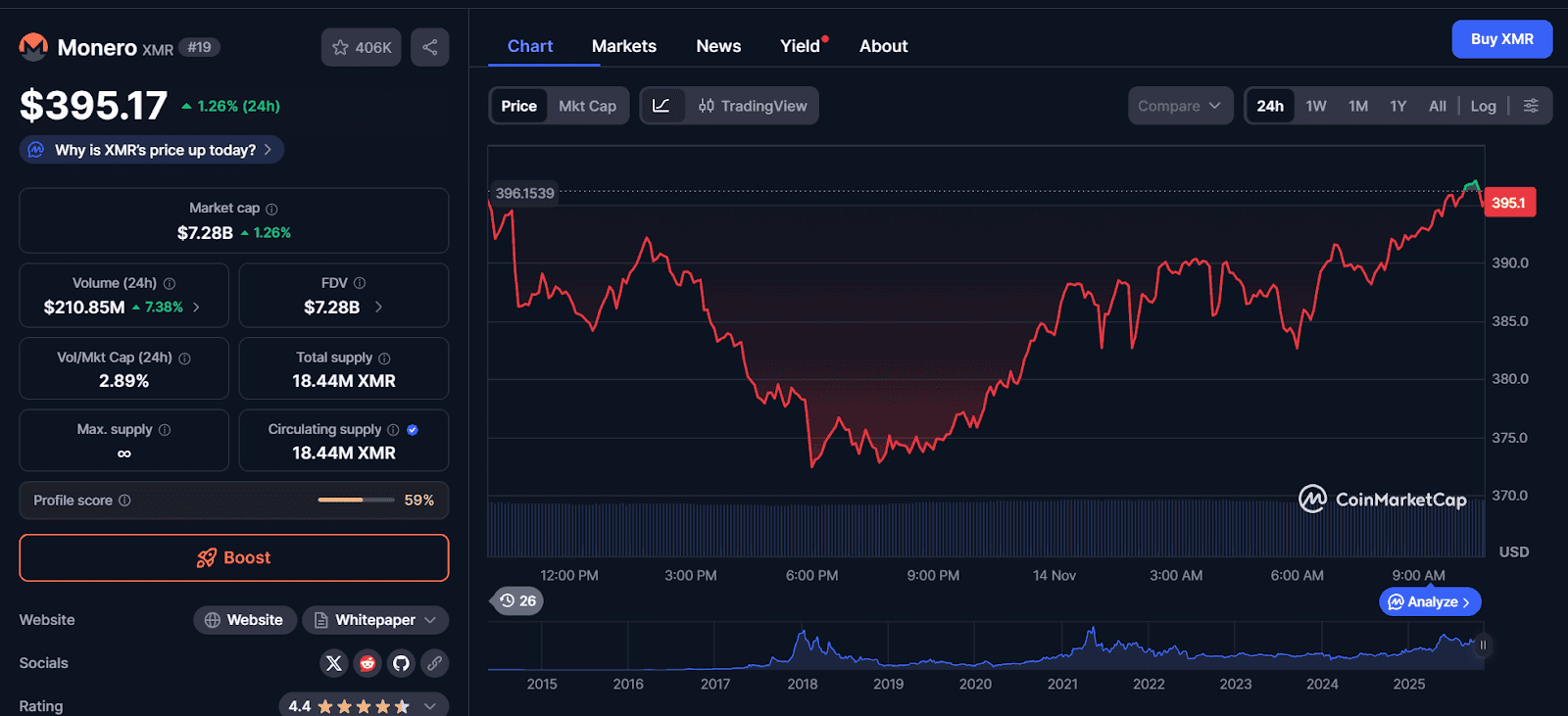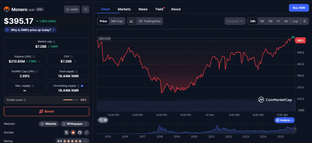 The crypto market is tightening around key privacy and presale narratives as Monero trades near $392.39, holding its position as one of the most established privacy assets heading into 2025.