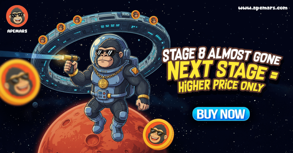 APEMARS has moved beyond typical meme coin framing. APEMARS has entered its stage 8 phase, called MISSION LOG 08, ZERO NAP, where participation has climbed to 949 users and total contributions now exceed $200,000. The presale price stands at $0.00006651, compared to a projected listing price of $0.0055.