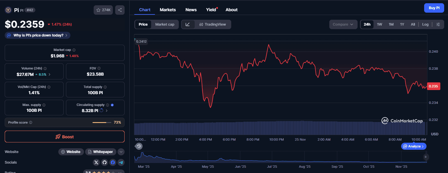 Pi PI +0.96% Network is no exception. Although the off-market value of $0.2358 still circulates across dashboards, thousands of holders are expressing growing frustration as Pi remains unlisted and without a confirmed mainnet timeline.