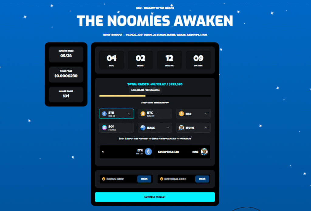 While Pi struggles to provide clarity, Noomez ($NNZ) is showing the exact opposite environment. The presale is live, the mechanics are public, and buyers can track progress in real time. The token recently jumped from $0.0000187 to $0.0000230, which automatically triggered the move into Stage 5, and early buyers expect Stage 6 to open as soon as the countdown closes.
