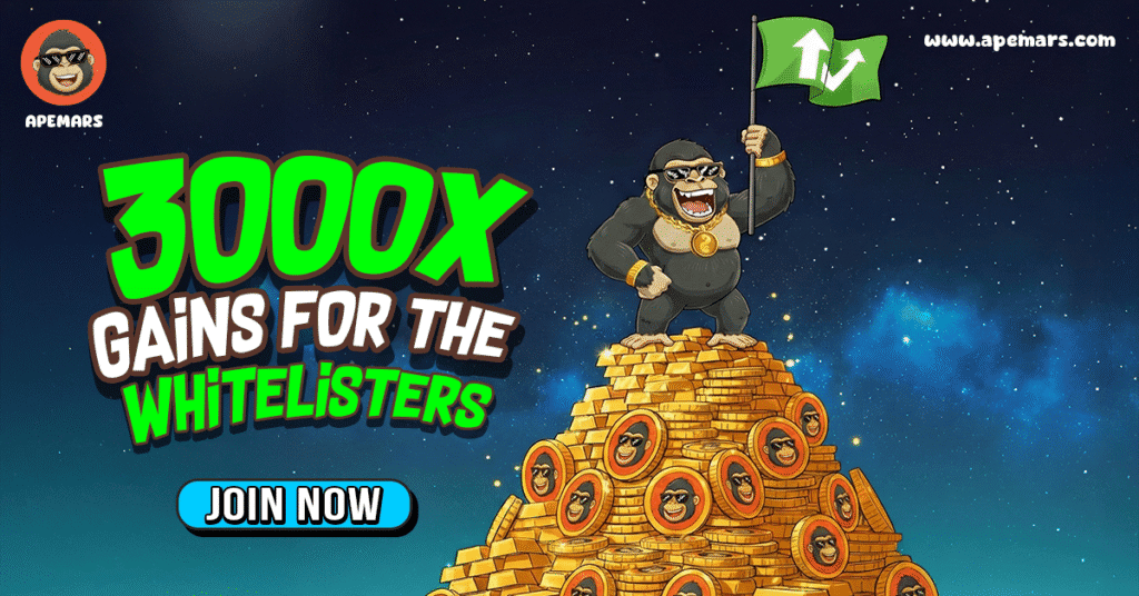 APEMARS isn’t just another meme coin; it’s a story-driven, high-upside crypto mission designed for early movers. When the whitelist ends, Stage 1 will be live at just $0.00001699, with a projected listing price of $0.0055, offering early participants a jaw-dropping potential ROI of 32,269%. This makes APEMARS one of the most promising top 100x crypto opportunities in 2026.