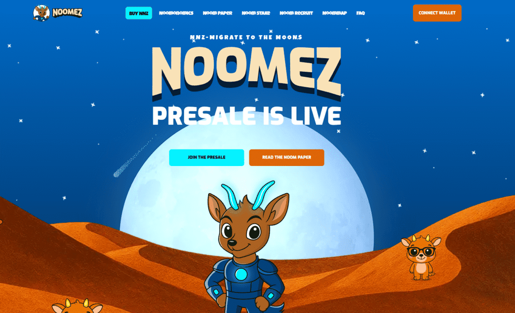 - Key features: Deflationary token, 28-stage presale, lore-driven community engagement, Noom Gauge mechanics.